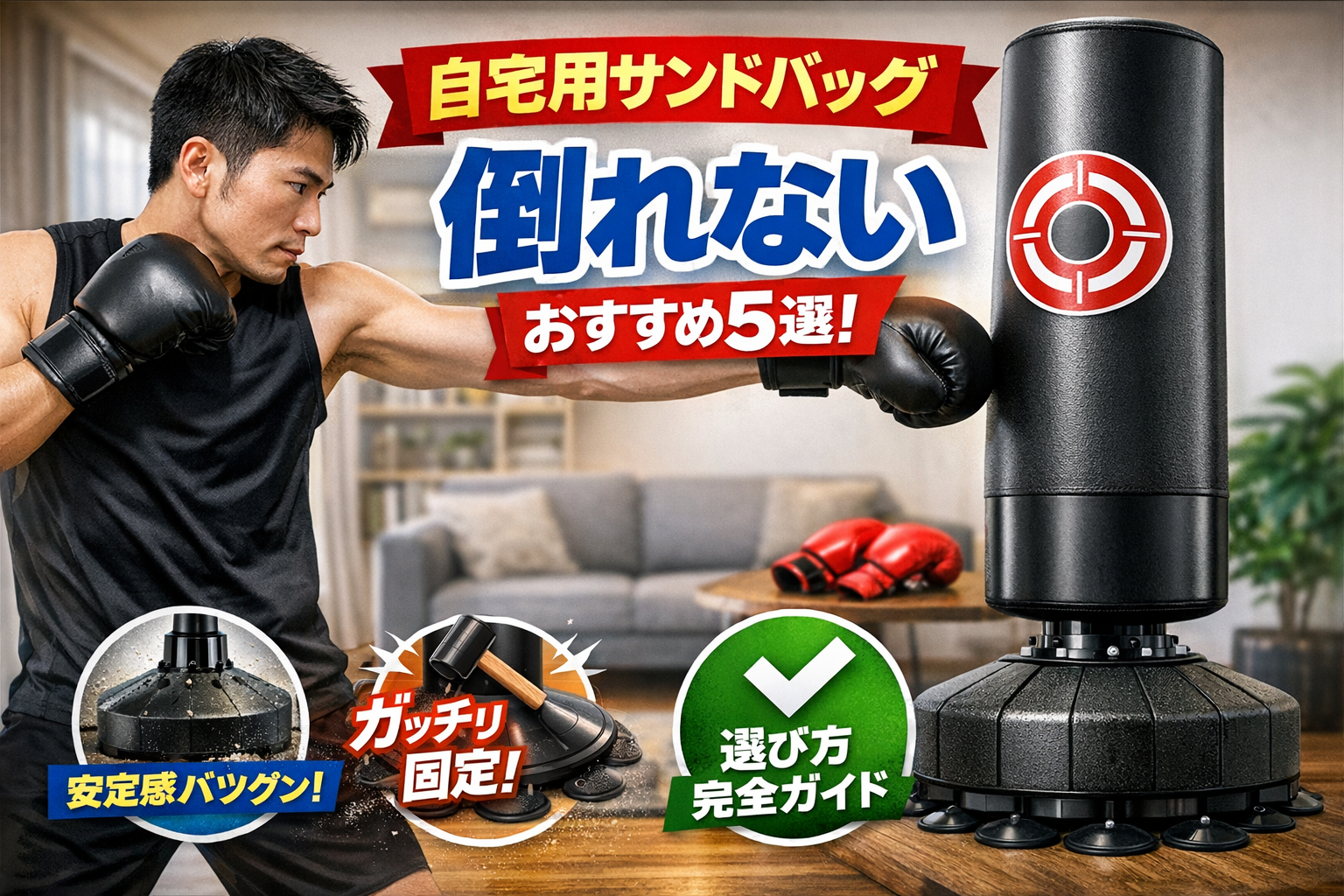 この記事では、自宅におすすめの倒れないサンドバッグを紹介します。