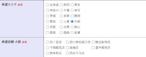 次に、希望エリアを『大阪』と選択すると、以下のように見学・体験が受けられる店舗が表示されます。