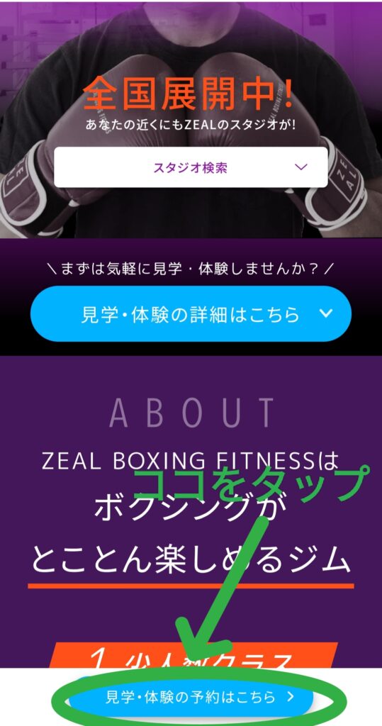 〇で囲った『見学・体験の予約はこちら』をタップします。