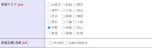 - 希望エリアと希望の店舗を選択